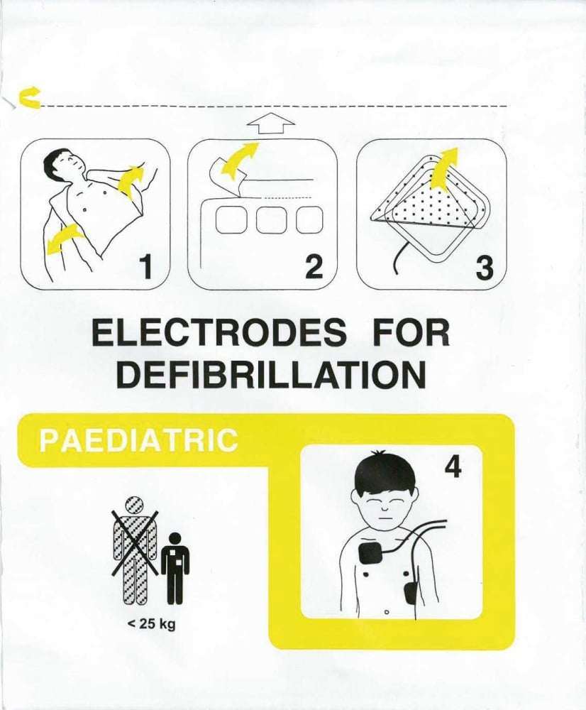 Les chocs délivrés avec ces électrodes seront de 50 joules contre 150 pour une utilisation de l’appareil chez l’adulte.